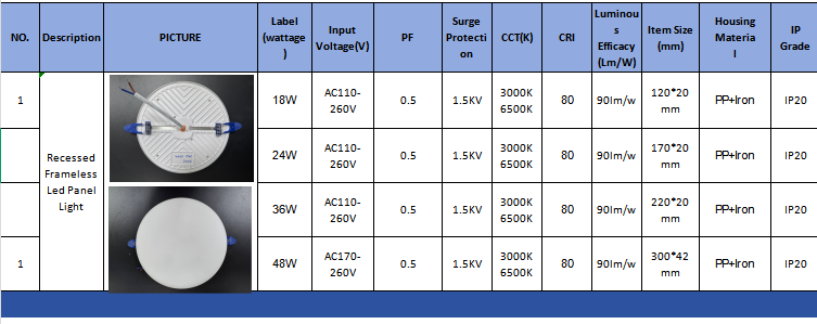 Lampu panel LED Recessed tanpa bingkai kami menggabungkan reka bentuk yang elegan dengan fleksibiliti yang luas. Populariti pasarannya yang tinggi telah menjadikannya sebagai produk utama kilang kami.
